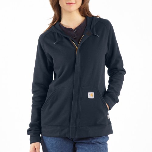 The Carhartt Women's Flame-Resistant Zip-Front Hooded Sweatshirt provides heat and safety. Made of 10-ounce FR knit, a blend of fifty five modacrylic and forty five cotton, it options an hooked up three-piece hood with drawcord, brass zipper entrance closure with Nomexzipper tape, interior and exterior protective flaps and front hand-warmer pockets. A longer length gives protection while accomplishing and bending on the job. NFPA 70E compliant... ... Read more Carhartt Women's Flame-Resistant Zip-Front Hooded Sweatshirt - Dark Navy X-Small